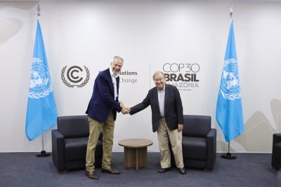 presidente da COP 30, André Corrêa do Lago, e António Guterres, Secretário-geral das Nações Unidas durante a 30ª Conferência das Partes (COP30).