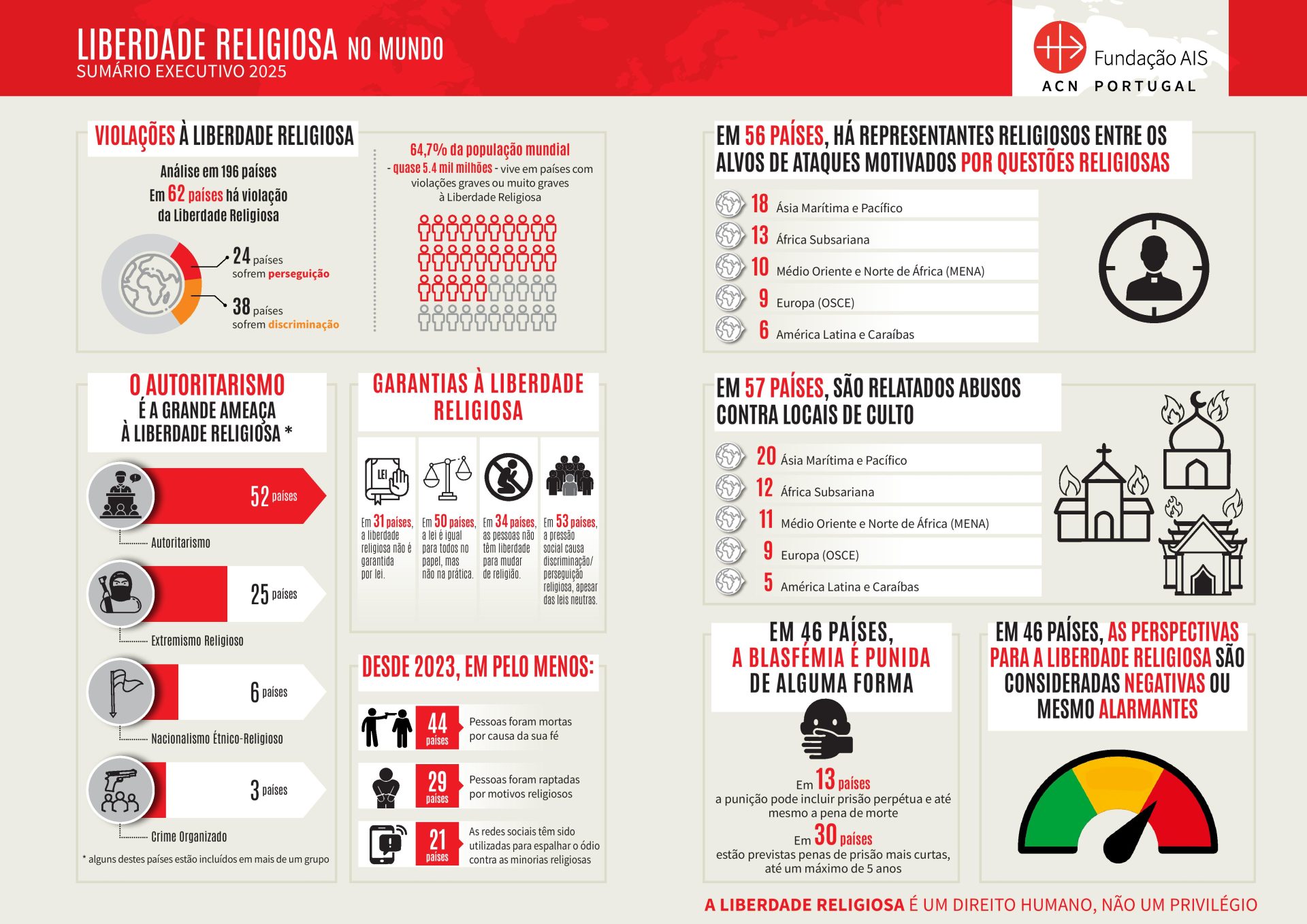 O Relatório sobre a Liberdade Religiosa no Mundo 2025 analisa 196 países, documentando restrições e perseguições e fornecendo informação verificada sobre as violações deste direito em todo o mundo sobre todos os grupos religiosos.