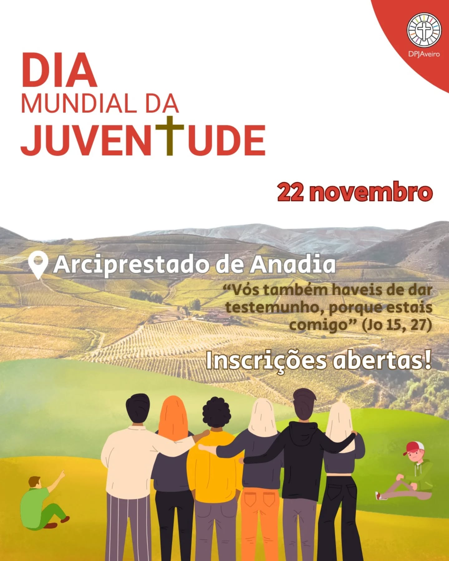 Aveiro, 12 nov 2025 (Ecclesia) – O Departamento Diocesano da Pastoral Juvenil de Aveiro vai realizar o Dia Mundial da Juventude 2025, este ano vivido a nível diocesano, no dia 22 de novembro (sábado), das 09h30 às 17h30, nos Salesianos de Mogofores (Anadia).