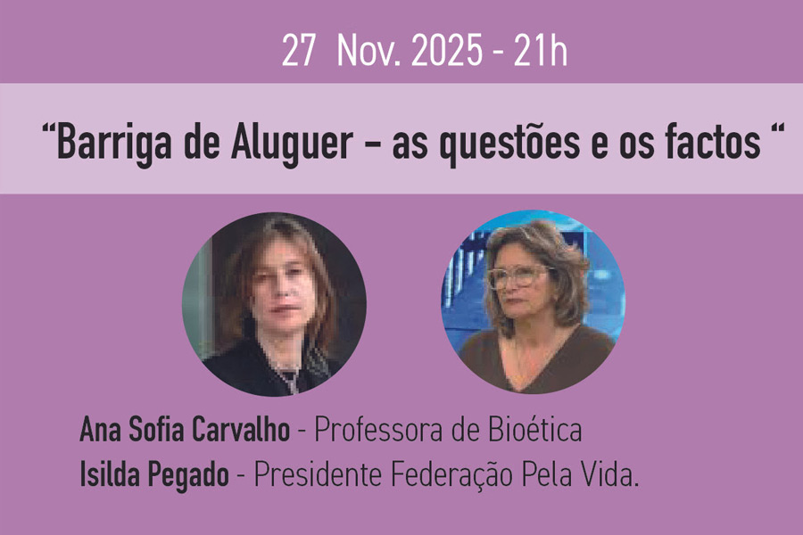 Lisboa, 13 nov 2025 (Ecclesia) – A Federação Pela Vida promove, dia 27 deste mês, pelas 21h00 um colóquio online, sobre «Barriga de Aluguer: as questões e os factos»