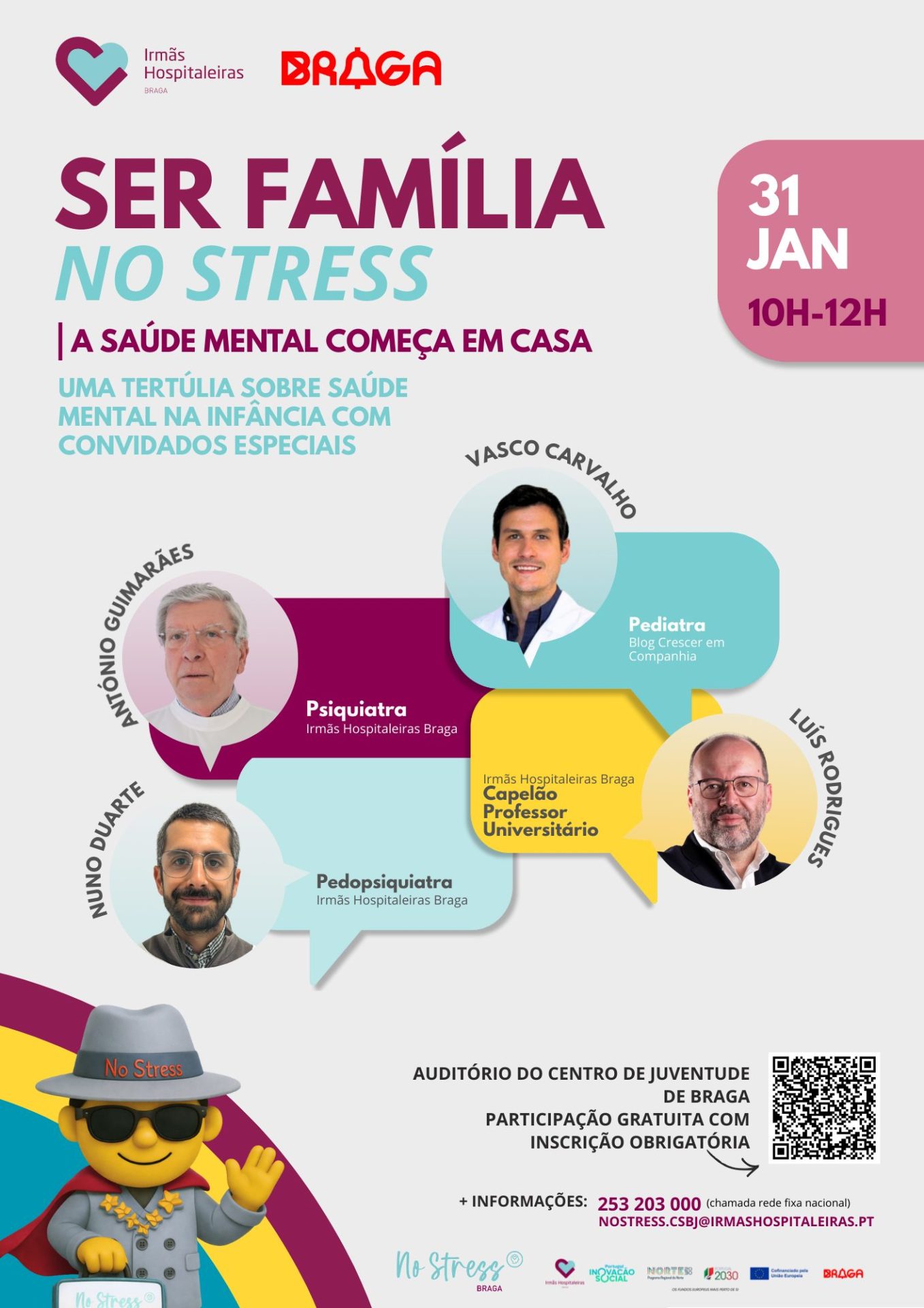 Braga, 22 jan 2026 (Ecclesia) – As Irmãs Hospitaleiras Braga realizam, dia 31 deste mês, entre as 10h00 e as 12h00, uma tertúlia subordinada ao tema «Ser Família NO STRESS».