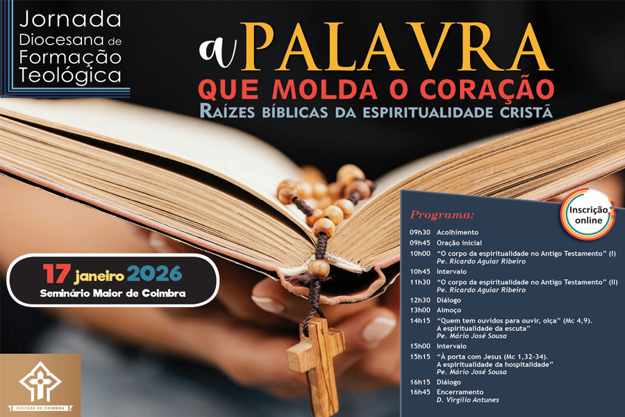 Coimbra, 13 jan 2026 (Ecclesia) – A Diocese de Coimbra vai promover a Jornada Diocesana de Formação Teológica, no dia 17 de janeiro, no Seminário Maior daquela cidade, sob o tema «A Palavra que molda o coração – raízes bíblicas da espiritualidade cristã».