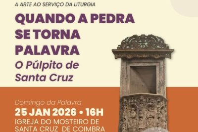 Coimbra, 19 jan 2026 (Ecclesia) – O Secretariado de Arte Sacra e Património e o Secretariado da Liturgia da Diocese de Coimbra promovem, dia 25 deste mês, pelas 16h00, uma visita guiada ao Púlpito de Santa Cruz de Coimbra.