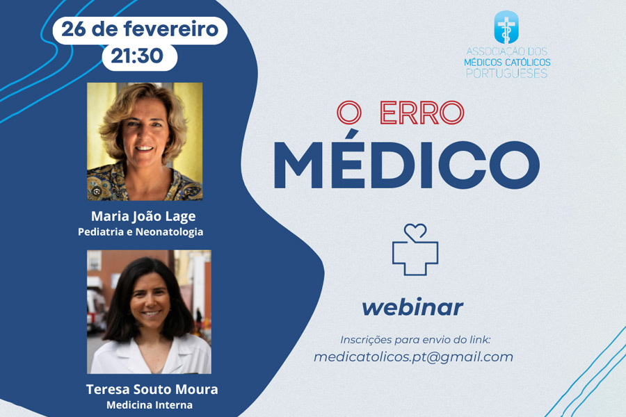 Lisboa, 06 fev 2026 (Ecclesia) – A Associação dos Médicos Católicos Portugueses realiza o webinar, dia 26 de fevereiro, com início às 21h30, sobre o tema «O Erro Médico».