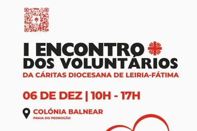 Leiria, 02 dez 2025 (Ecclesia) – A Cáritas Diocesana de Leiria-Fátima promove, dia 06 deste mês, o primeiro encontro de voluntários, que terá lugar no próximo dia 6 de dezembro, na Casa da Praia do Pedrógão.