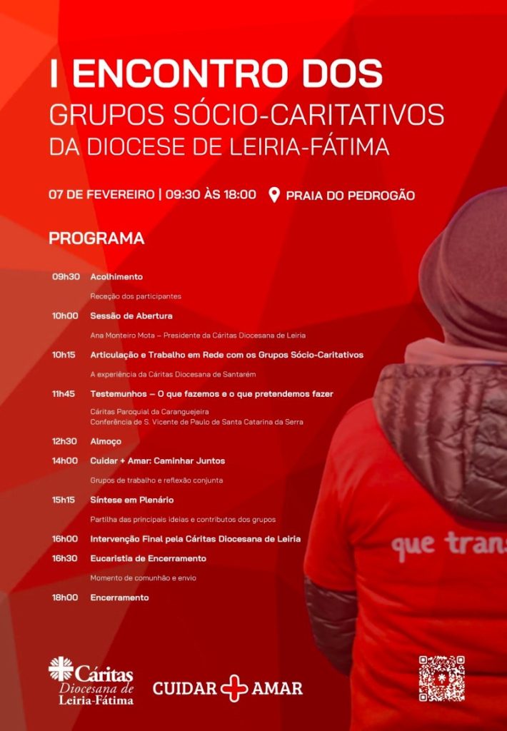 Leiria, 12 jan 2025 (Ecclesia) – A Cáritas Diocesana de Leiria vai realizar o I Encontro diocesano dos Grupos Sócio-Caritativos de Leiria-Fátima, no âmbito do projeto ‘Cuidar + Amar’, no dia 7 de fevereiro, das 09h30 às 18h00, na Praia do Pedrogão.