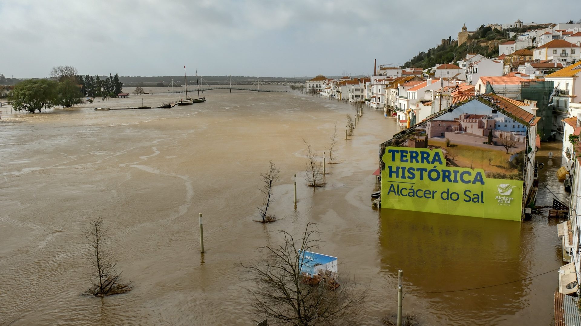 A enchente do rio Sado junto a Alcácer do Sal, distrito de Setúbal, conta com cerca de 100 operacionais no terreno, entre bombeiros, GNR e funcionários municipais, além de cortes de energia elétrica pontuais para prevenir danos.