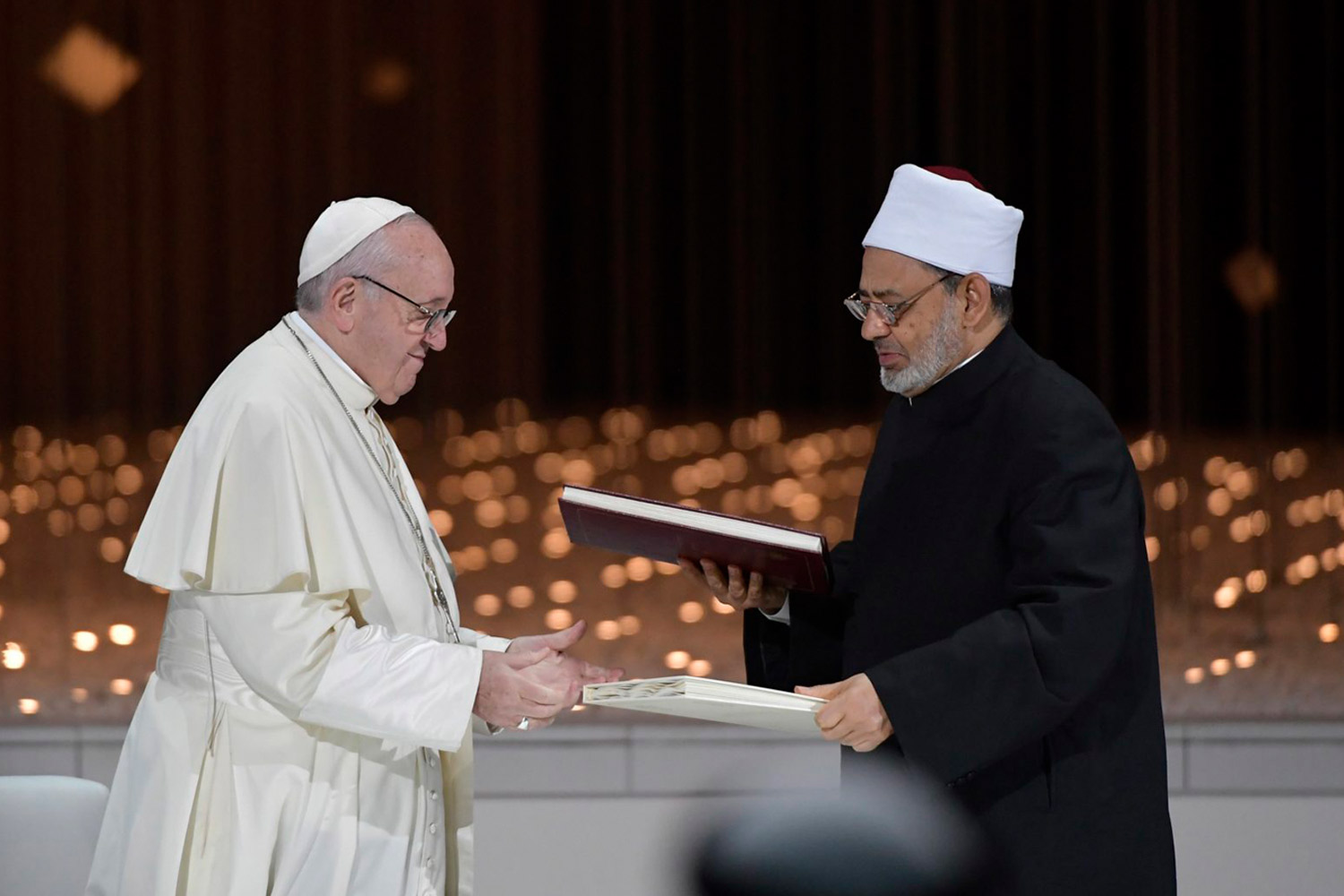 No dia 4 de fevereiro de 2019, o Papa Francisco e o grande imã de Al-Azhar, Ahmad Al-Tayyeb, assinaram nos Emirados Árabes Unidos o Documento sobre a Fraternidade Humana em prol da Paz Mundial e da Convivência Comum., que condena o terrorismo e a intolerância religiosa.