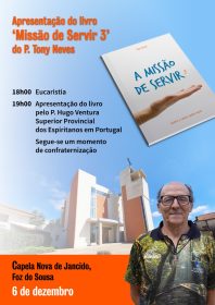 O livro “Missão de Servir 3” vai ser apresentado no dia 6 de dezembro, pelas 19h, na Capela Nova de Jancido, na Foz do Sousa, em Gondomar, pelo padre Hugo Ventura, superior provincial dos Espiritanos em Portugal, um momento antecedido pela Eucaristia (16h) e seguido de um momento de confraternização. |