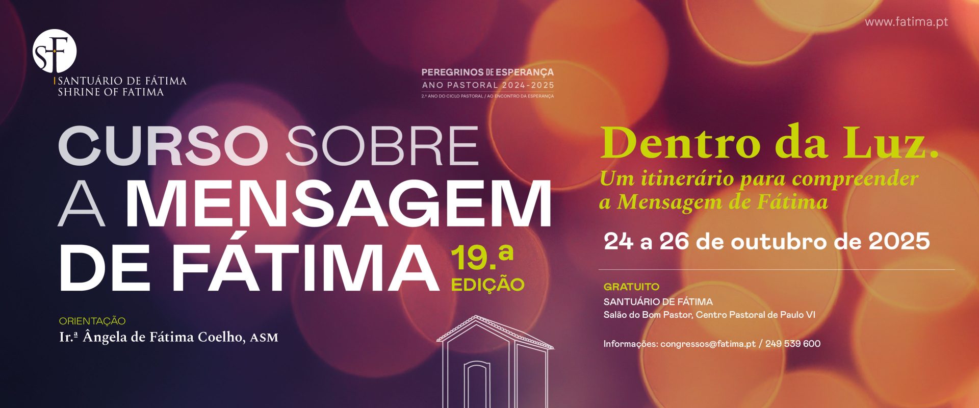 Fátima, 24 out 2025 (Ecclesia) – O Santuário de Fátima vai realizar a 19.ª edição do Curso sobre a Mensagem de Fátima, orientado pela irmã Ângela Coelho, de hoje a domingo, no Centro Pastoral de Paulo VI, e tem “abertas as inscrições”.