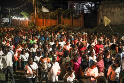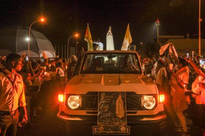 Arlindo Homem acrescenta que forma “centenas de fiéis, corações ansiosos e mãos erguidas em louvor” que participaram na procissão luminosa, que percorreu cinco quilómetros “de oração e cântico, entre lágrimas, sorrisos e o som sereno do rosário”, durante três horas, até à Sé em São Tomé.