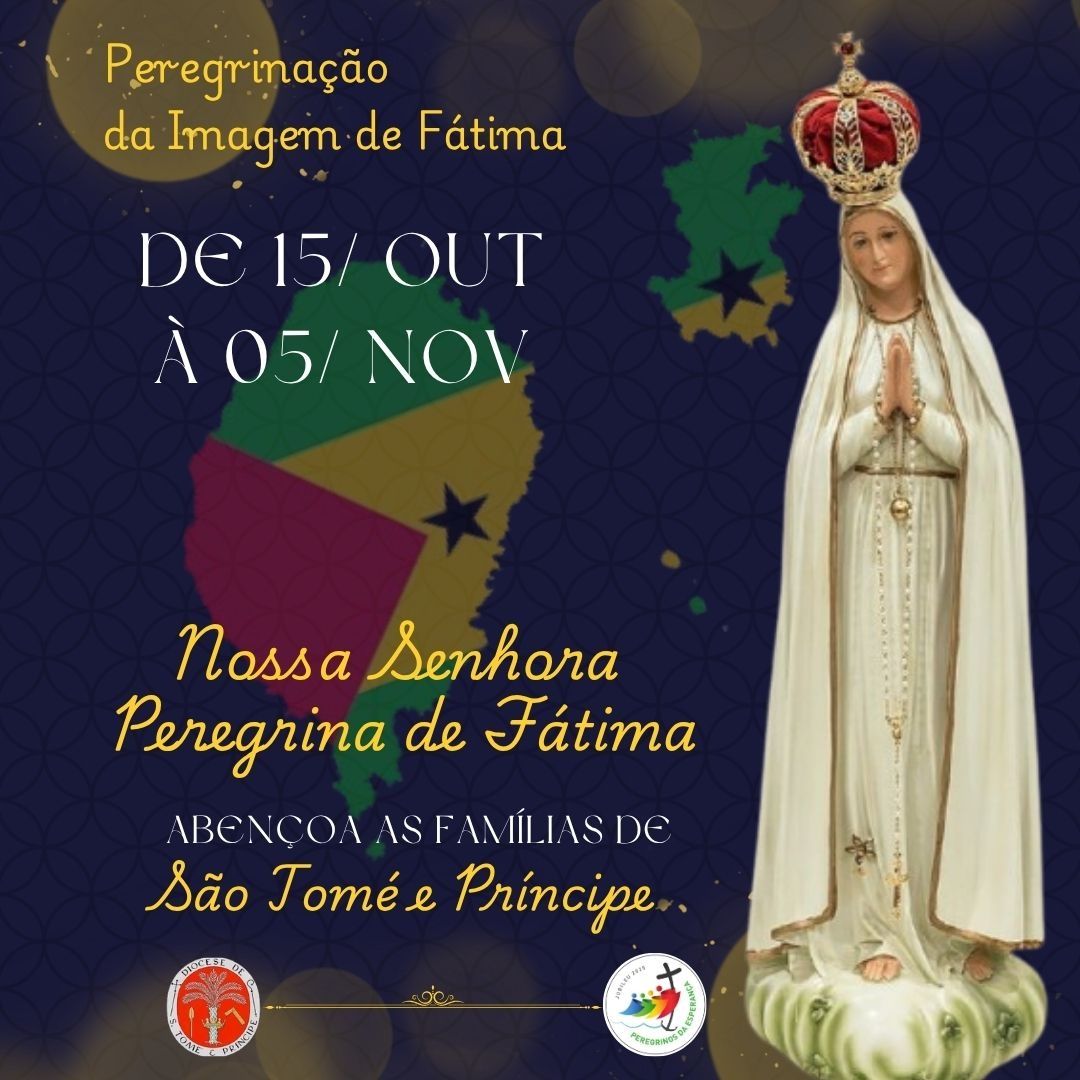 A Diocese de São Tomé e Príncipe, que “recebe com alegria a visita” da Imagem Peregrina de Nossa Senhora de Fátima, informou que “este é um tempo de oração, fé e esperança, em que Maria Santíssima”, vai visitar e abençoar “as famílias, comunidades e toda a nação santomense”, numa publicação nas redes sociais.