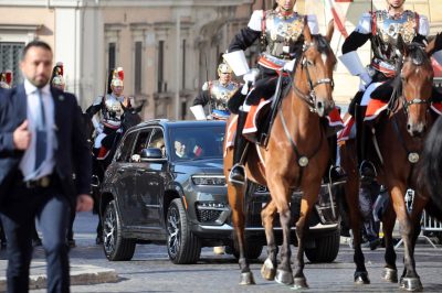 Leão XIV foi recebido com honras militares e, após a troca de presentes, teve lugar a sessão oficial perante as autoridades italianas.