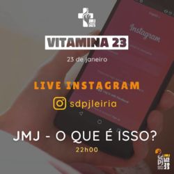 O Serviço da Pastoral Juvenil da Diocese de Leiria-Fátima promove, às 22h00, a atividade “Vitamina 23” para esclarecer “todas as dúvidas” que os jovens tenham sobre a JMJ e vai realizar-se no Instagram e responde a todas as perguntas sobre a JMJ.