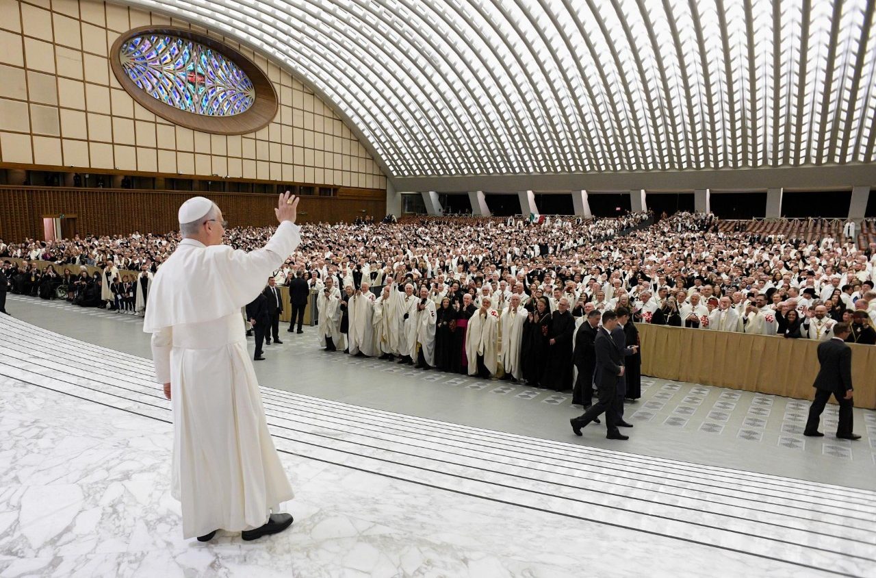 O encontro, que reuniu 3600 cavaleiros e damas da Ordem Equestre do Santo Sepulcro de Jerusalém, no Auditório Paulo VI, concluiu-se com a recitação do Pai-Nosso e a bênção apostólica do Papa.