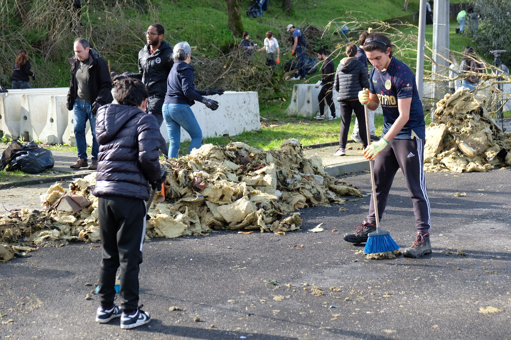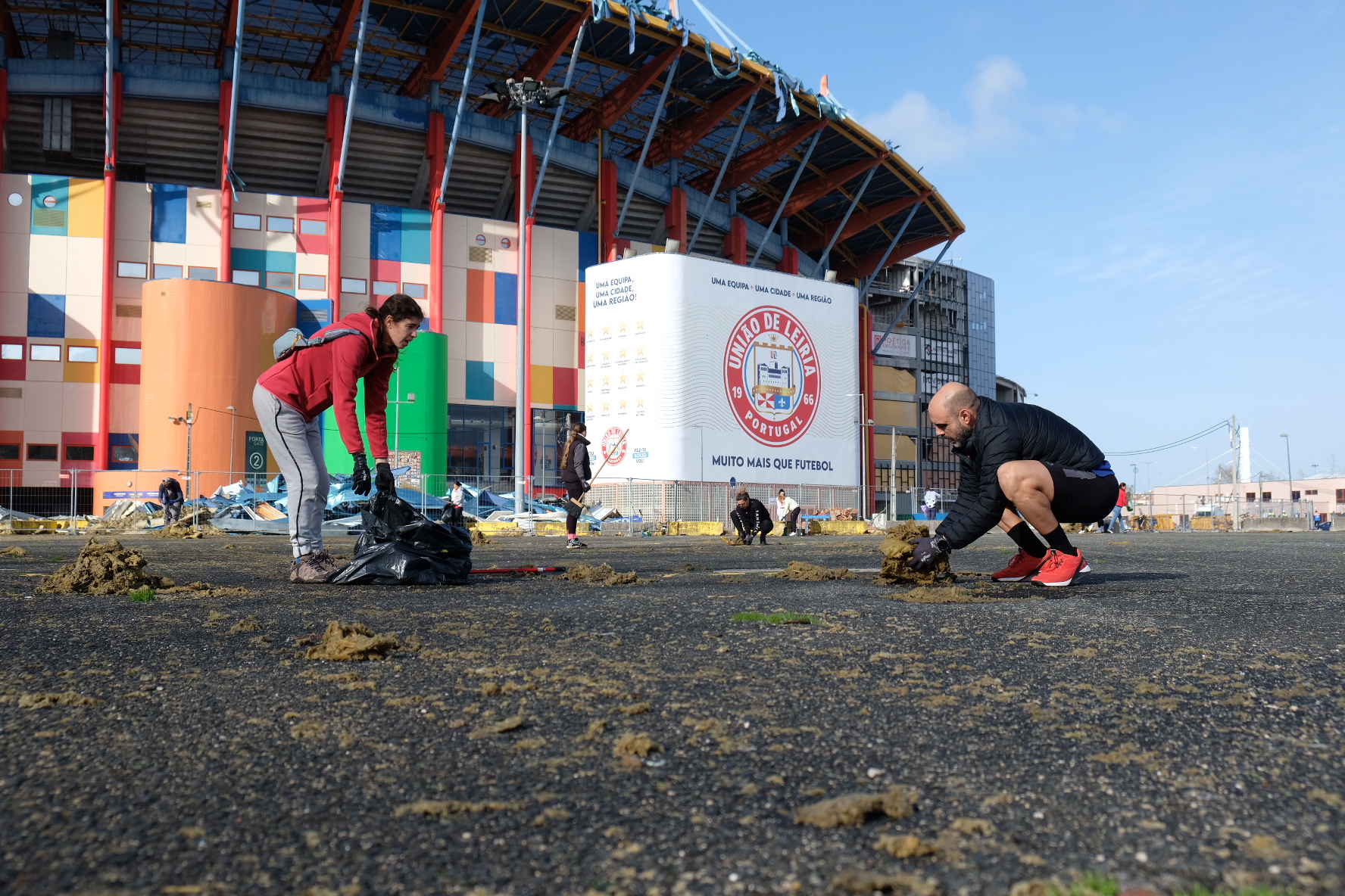 Esta manhã, uma ação de limpeza juntou cerca de 600 pessoas, segundo o vereador da Proteção Civil da Câmara de Leiria, Luís Lopes, junto ao Estádio Municipal de Leiria para limpar a cidade.