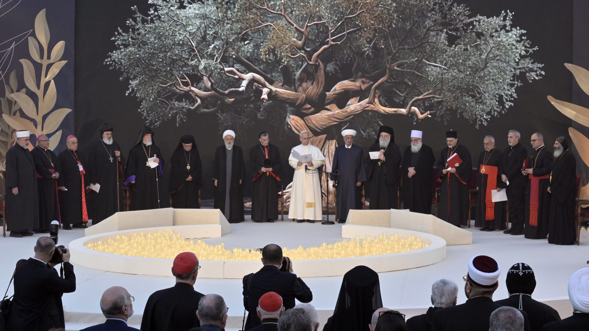 Num palco onde conviveram líderes cristãos (católicos, ortodoxos e protestantes), e da tradição islâmica (sunitas, xiitas, drusos e alauitas), o Papa evocou a imagem dos cedros e da oliveira para falar da identidade libanesa.