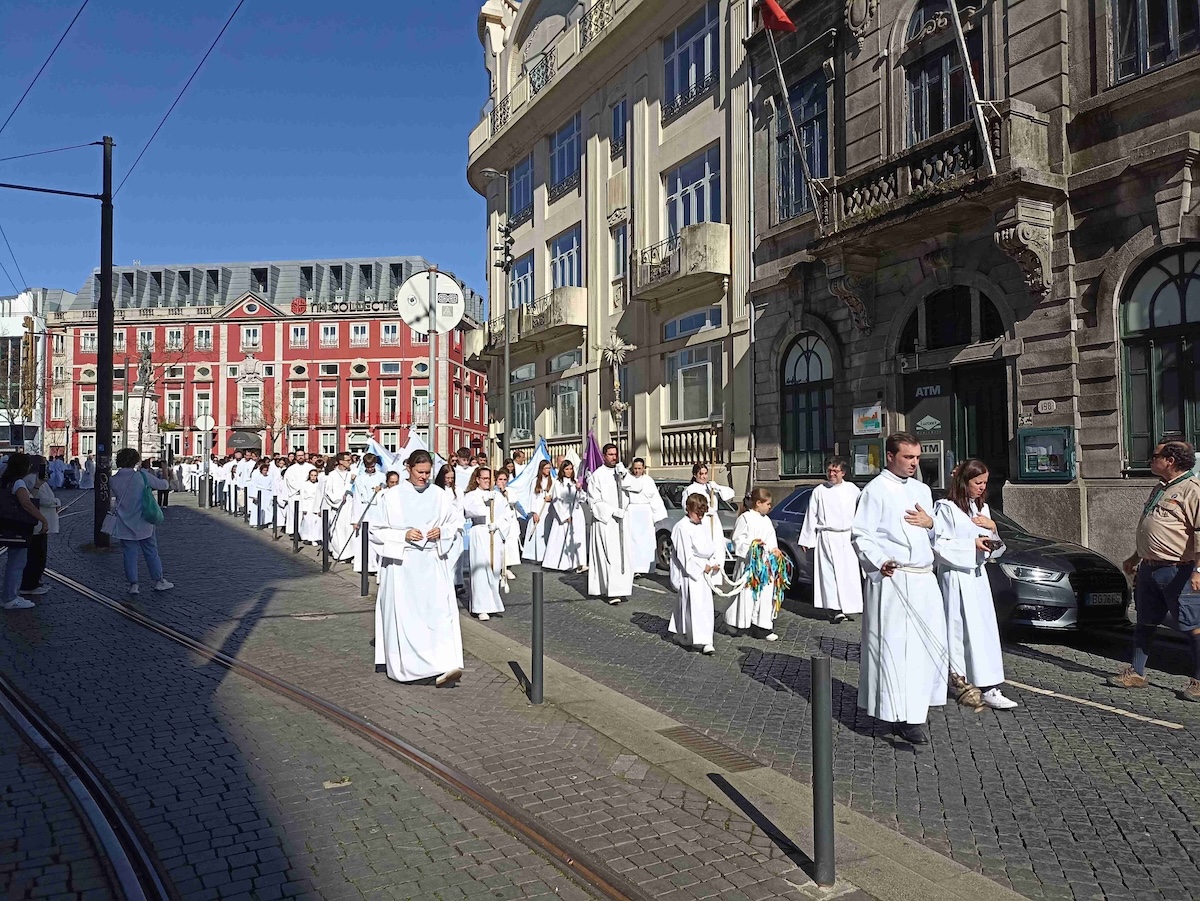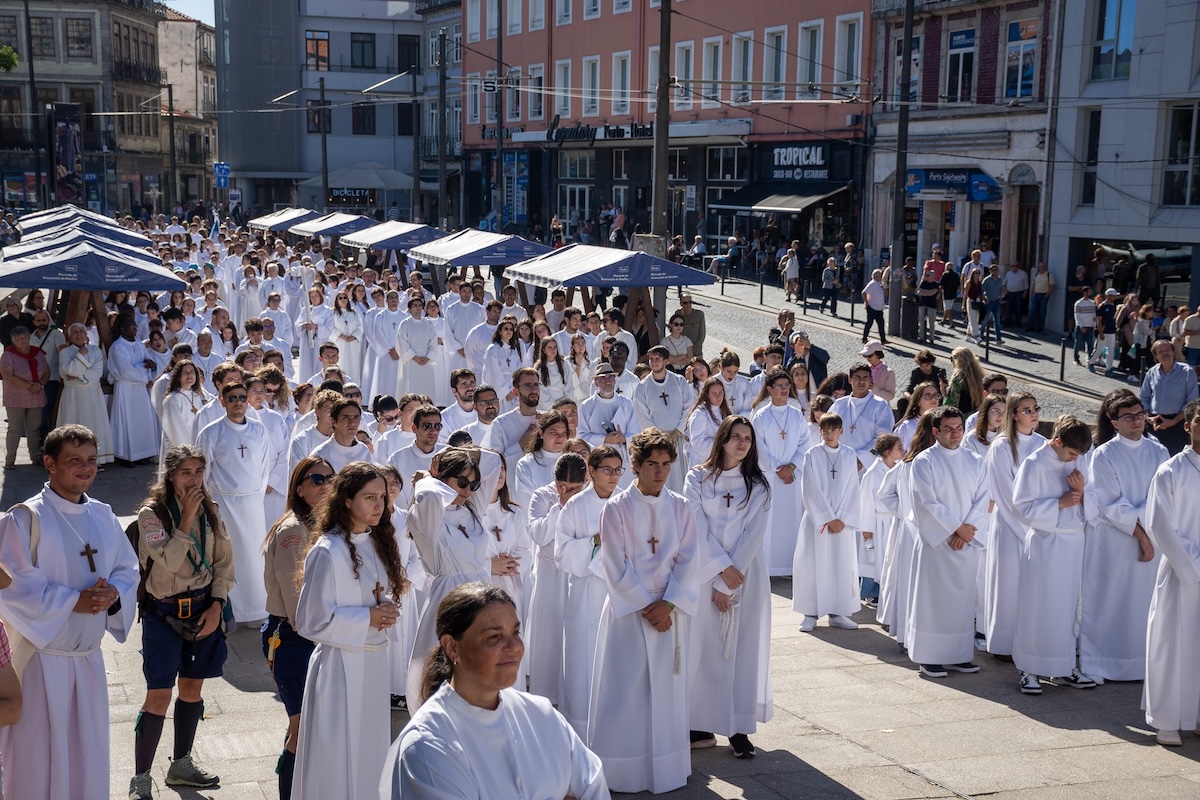 A celebração jubilar iniciou diante da Igreja de Santo Ildefonso, onde começou a procissão de entrada da Eucaristia até à Catedral do Porto, e foi participada por mais de 500 acólitos.