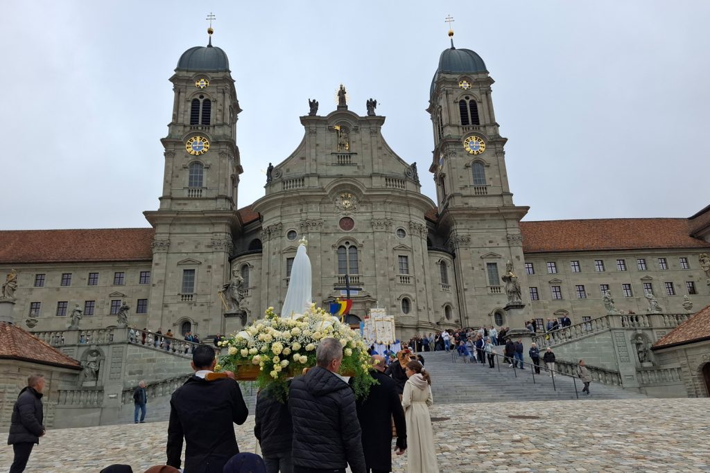 A razão da minha ida a Lucerna era clara: presidir à Peregrinação das Comunidades Lusófonas à Abadia Einsiedeln, por ocasião do 13 de outubro, comemorando Nossa Senhora de Fátima. Aconteceu no domingo dia 12. A viagem de Lucerna até Einsiedeln, feita pela manhã, encheu-me os olhos da beleza de uma paisagem que obriga a contemplar montes arborizados e vales cultivados ou com dezenas de vacas a pastar na pradaria. Também são belos os muitos lagos que nos aparecem nas curvas da estrada que serpenteia entre povoações e florestas. Fazia frio, muito frio mesmo quando chegamos à histórica Abadia, o maior centro de peregrinações da Suíça. É tão antiga (cerca de 1200 anos!) e imponente como bela pelo excelente enquadramento numa paisagem outonal de raro impacto visual. Aqui vivem cerca de 60 monges beneditinos que transformam este paraíso num lugar de espiritualidade, sempre cheio de grupos, famílias e pessoas individuais que aqui vêm para participar nas celebrações ou pura e simplesmente desfrutar da natureza, fazendo alguns dos trilhos pelo meio dos imensos campos e florestas cuidados pelos monges.