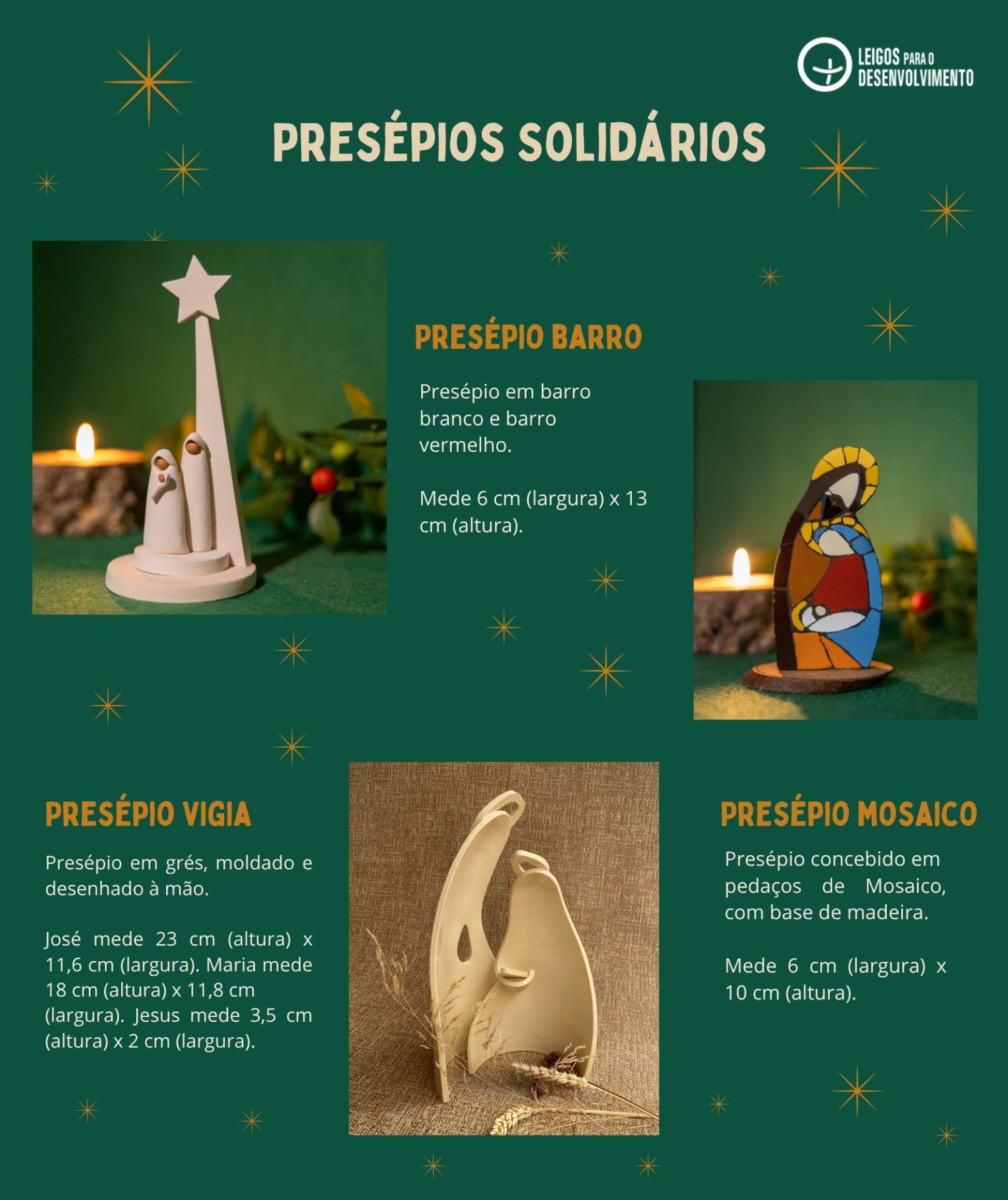 “Com o objetivo de angariar fundos para a sustentabilidade dos seus projetos no terreno, os Leigos para o Desenvolvimento apresentam os Presépios Solidários para este Natal”, explica a organização não-governamental para o desenvolvimento (ONGD) católica, numa nota enviada à Agência ECCLESIA.