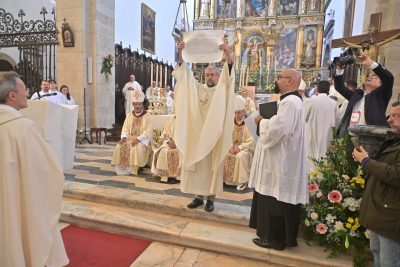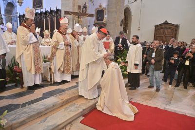 A liturgia da ordenação inclui a imposição das mãos e a unção da cabeça dos eleitos, a entrega do livro dos Evangelhos e das insígnias episcopais – o anel, a mitra e o báculo.