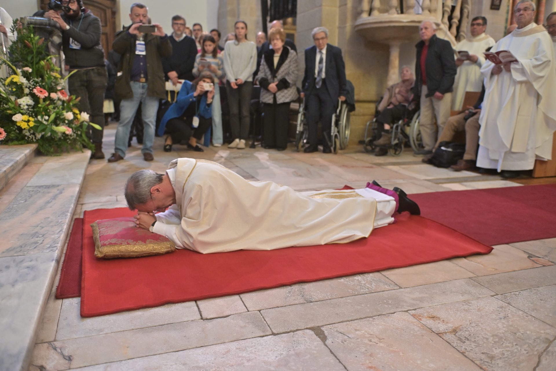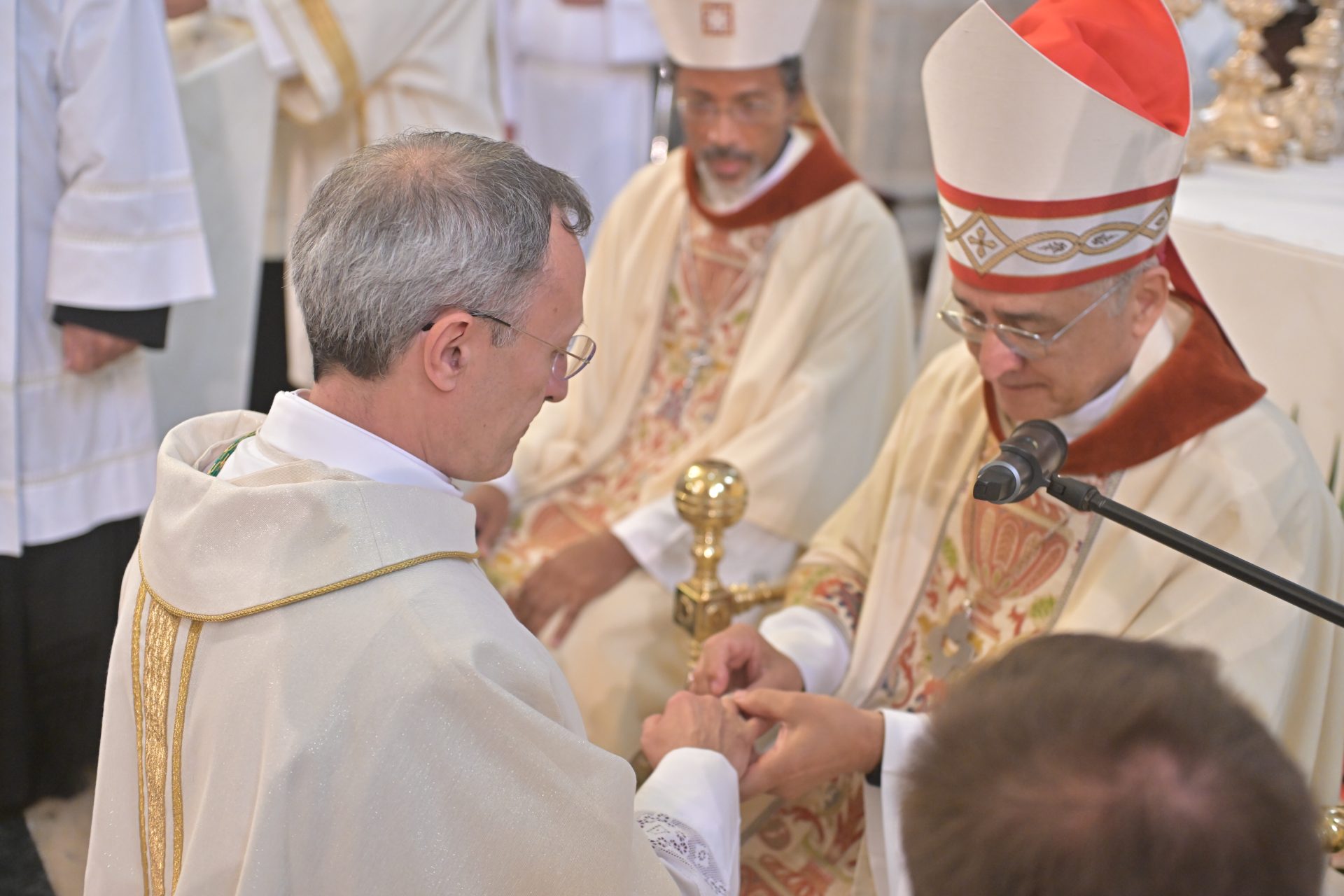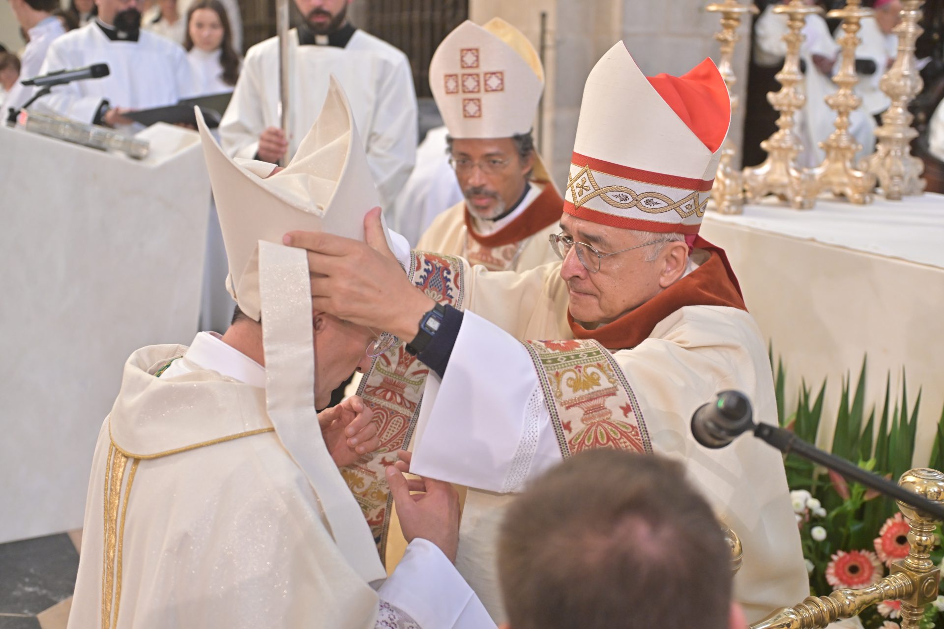 A liturgia da ordenação inclui a imposição das mãos e a unção da cabeça dos eleitos, a entrega do livro dos Evangelhos e das insígnias episcopais – o anel, a mitra e o báculo.