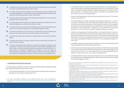 O relatório enfatiza as medidas positivas adotadas em Portugal, como a criação de comissões diocesanas com leigos capacitados, a divulgação acessível dos canais de denúncia, a criação de programas de formação e sensibilização ou o trabalho no “acompanhamento das reparações dos danos causados às vítimas e sobreviventes de abuso sexual”.