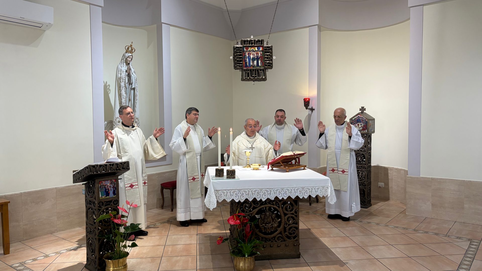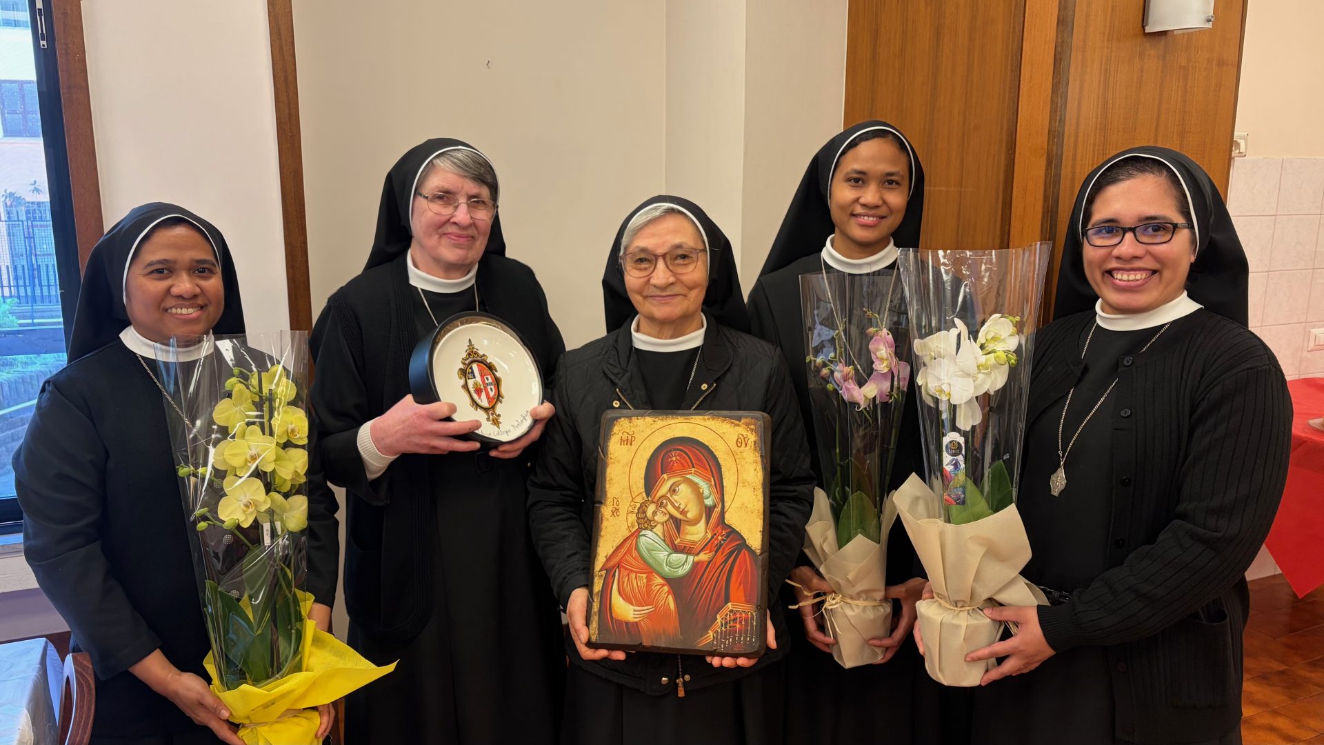 A Eucaristia incluiu dois gestos simbólicos, que disseram “obrigado pela vossa maternidade espiritual”, cada irmã Franciscana de Nossa Senhora das Vitórias recebeu uma flor e um ícone de Nossa Senhora, e este encontro jubilar dos 50 anos da congregação religiosa no Colégio Pontifício em Roma terminou com um almoço festivo.