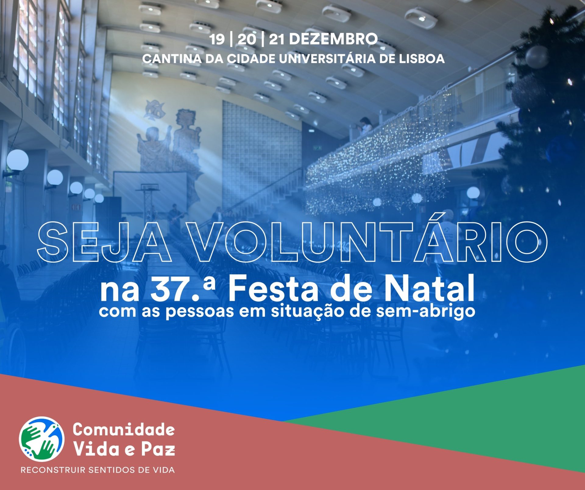 A Comunidade Vida e Paz informa que já estão abertas as inscrições para os voluntários que querem participar na edição da festa de Natal 2025, que se vai realizar de 19 a 21 de dezembro, na cantina da Cidade Universitária de Lisboa.
