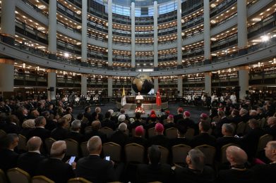 Leão XIV elogia papel de «ponte» do país e pede sociedade plural contra a «globalização da indiferença» Ancara, 27 nov 2025 (Ecclesia) – O Papa alertou hoje, em Ancara, para a necessidade de evitar uma “terceira guerra mundial em pedaços”, como dizia Francisco, seu antecessor, apelando ao diálogo e à estabilidade para superar cenários de … Continue a ler Turquia: «Está em jogo o futuro da humanidade», alerta o Papa, perante cenário de guerras e conflitos