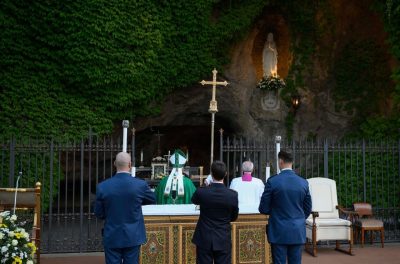 A celebração eucarística foi celebrada na Gruta de Lourdes, na presença de autoridades eclesiásticas e também dos familiares dos gendarmes.