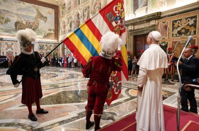 O comandante da Guarda Suíça, na sua intervenção, recordou São Nicolau da Flüe, capitão e místico suíço, que conseguiu evitar uma guerra fratricida e tornou-se símbolo de paz, uma mensagem ainda mais atual “num mundo marcado por guerras brutais e divisões”.