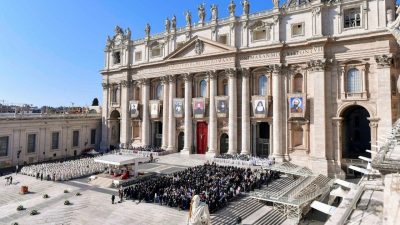 Depois da proclamação, assinalada pela multidão com uma salva de palmas, o cardeal Becciu agradeceu ao Papa Leão XIV, concluindo o rito.