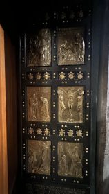 A Porta Santa de São Pedro, inaugurada e aberta pelo Papa Pio XII na véspera de Natal de 1949 para o Jubileu de 1950, é a única que permanece aberta até à Epifania, data em que se celebra a manifestação de Jesus a todos os povos, representados pelos Magos; esculpida por Vico Consorti, exibe, entre os seus painéis narrativos, uma série de 36 brasões.