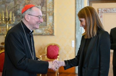 O Vaticano explica que Roberta Metsola, que estava de visita a Roma, acompanhada por uma delegação de cinco membros, reuniu-se também com autoridades da República Italiana, dentro da perspetiva de diálogo entre as instituições nacionais e religiosas europeias sobre os temas fundadores da União Europeia, e participou no evento ‘O legado de De Gasperi: a Europa da defesa da liberdade’, na sede do Parlamento Europeu, na Piazza Venezia.