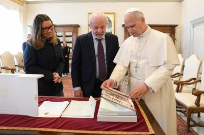 O chefe de Estado brasileiro e a primeira-dama Rosângela Lula da Silva, popularmente conhecida como Janja, que o acompanhou no encontro, mostraram-se “muito felizes em saber que sua Santidade pretende visitar o Brasil no momento oportuno”.