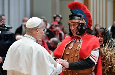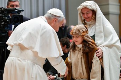 Neste contexto, citou Bento XVI que disse que Deus “vem sem armas, sem força, […] para vencer o orgulho, a violência e a cobiça do homem”, na catequese de 23 de dezembro de 2009, e o Papa Francisco que na Carta Apostólica ‘Admirabile Signum’ (Sinal Admirável), explicou que diante do presépio, ao contemplar “a cena do Natal”, se é convidado a pôr “espiritualmente a caminho, atraídos pela humildade daquele que se fez homem para encontrar cada homem”.