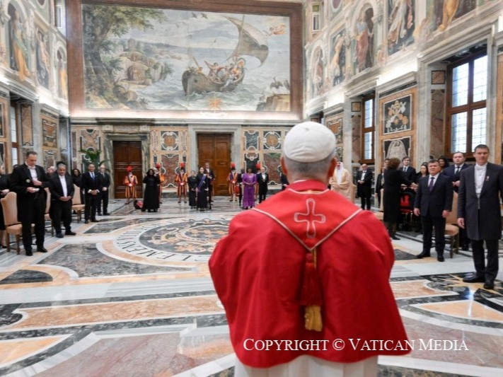 No encontro encontravam-se embaixadores do Uzbequistão, Moldávia, Bahrein, Sri Lanka, Paquistão, Libéria, Tailândia, Lesoto, África do Sul, Fiji, Micronésia, Letónia e Finlândia, a quem o Papa recordou a paz como um “um dom ativo e exigente”, que se “constrói no coração e a partir do coração”.