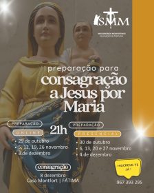 De acordo com publicação na página da internet, “esta consagração é uma forma de viver plenamente as promessas do Batismo, reconhecendo que tudo o que somos e temos pertence a Deus, e que Maria, Mãe e Educadora na fé, nos conduz de modo seguro ao Coração de Jesus”.